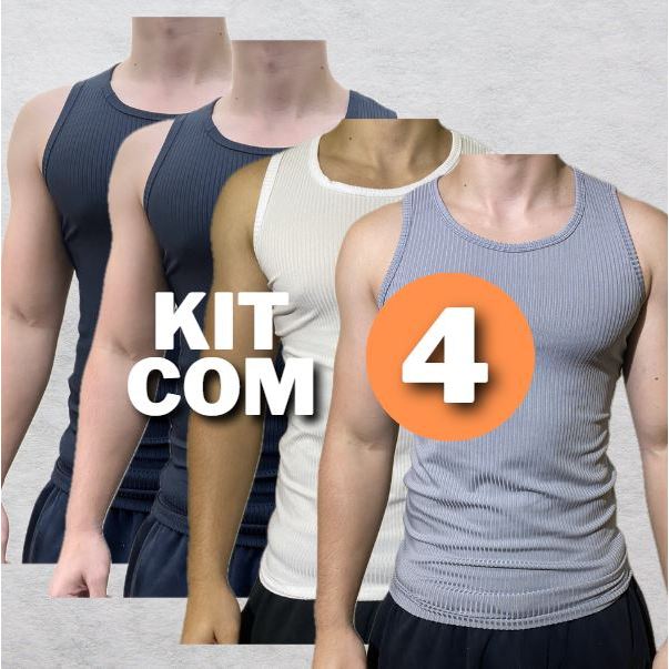 Kit com 4 regata americana canelada masculina trapper academia slim
