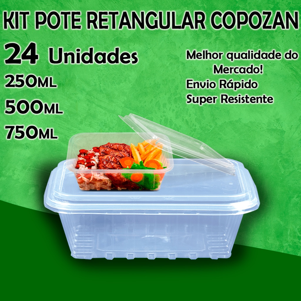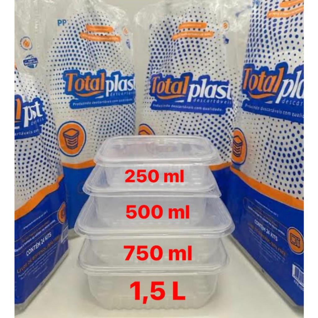 24un Pote retangular Marmita Descartável 250 / 500 / 750 / 1500ml Fitness Fit Freezer Microondas Total Plast