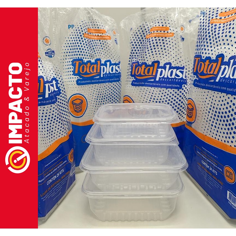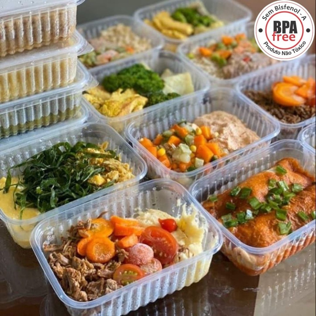 24un Pote retangular Marmita Descartável 250 / 500 / 750 / 1000ml Fitness Fit Freezer Microondas dieta TOTALPLAST - Igual da marca PRA FESTA