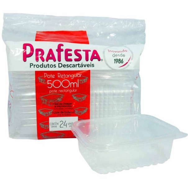 24un Pote retangular Marmita Descartável 500ml Fitness Fit Freezer Microondas dieta TOTALPLAST- Igual a Prafesta