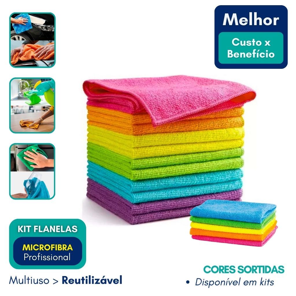 Kit Panos Microfibra 10 15 20 Unidades Multiuso Toalha Mágica Carro Reutilizável Flanela Limpa Vidro