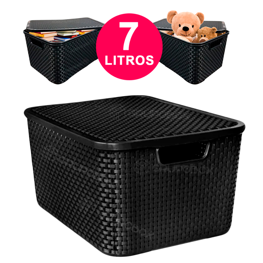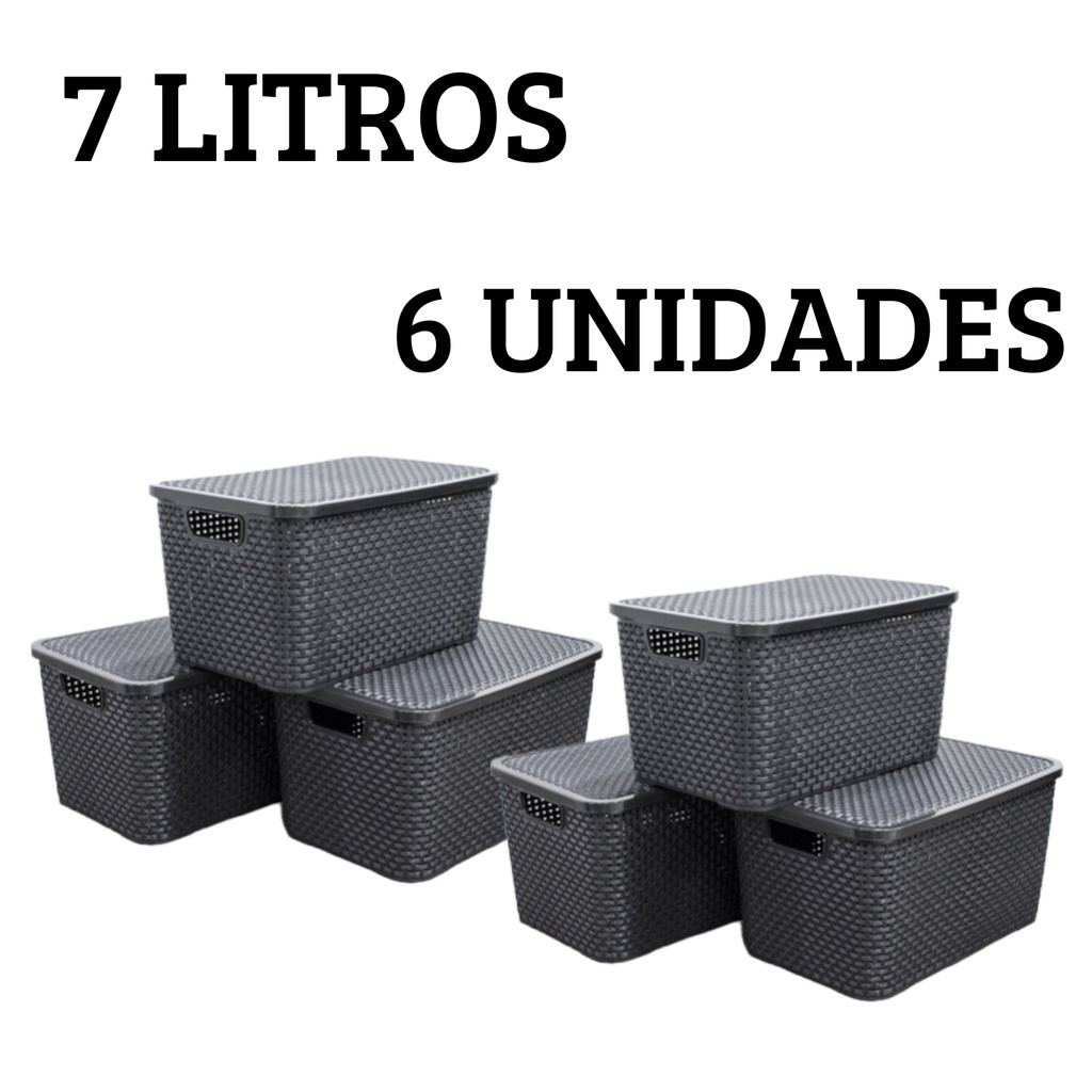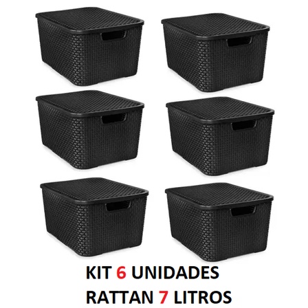 Kit 6 Caixa Organizadora Cesto Organizador Com Tampa 7 Litros Multiuso Rattan Preto