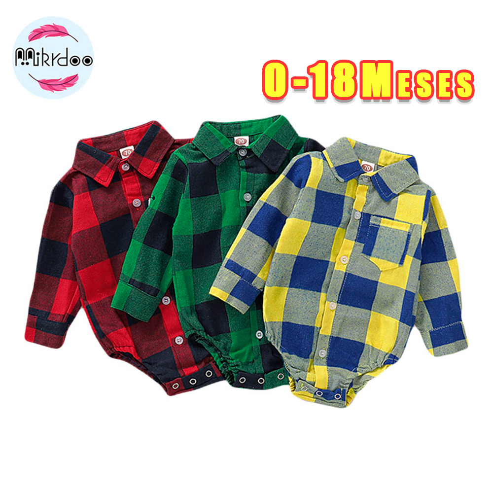 0-24 Meses Macacão De Bebê Recém-Nascido Unissex Com Estampa Xadrez De Manga Comprida Com Gola De Botões Versátil