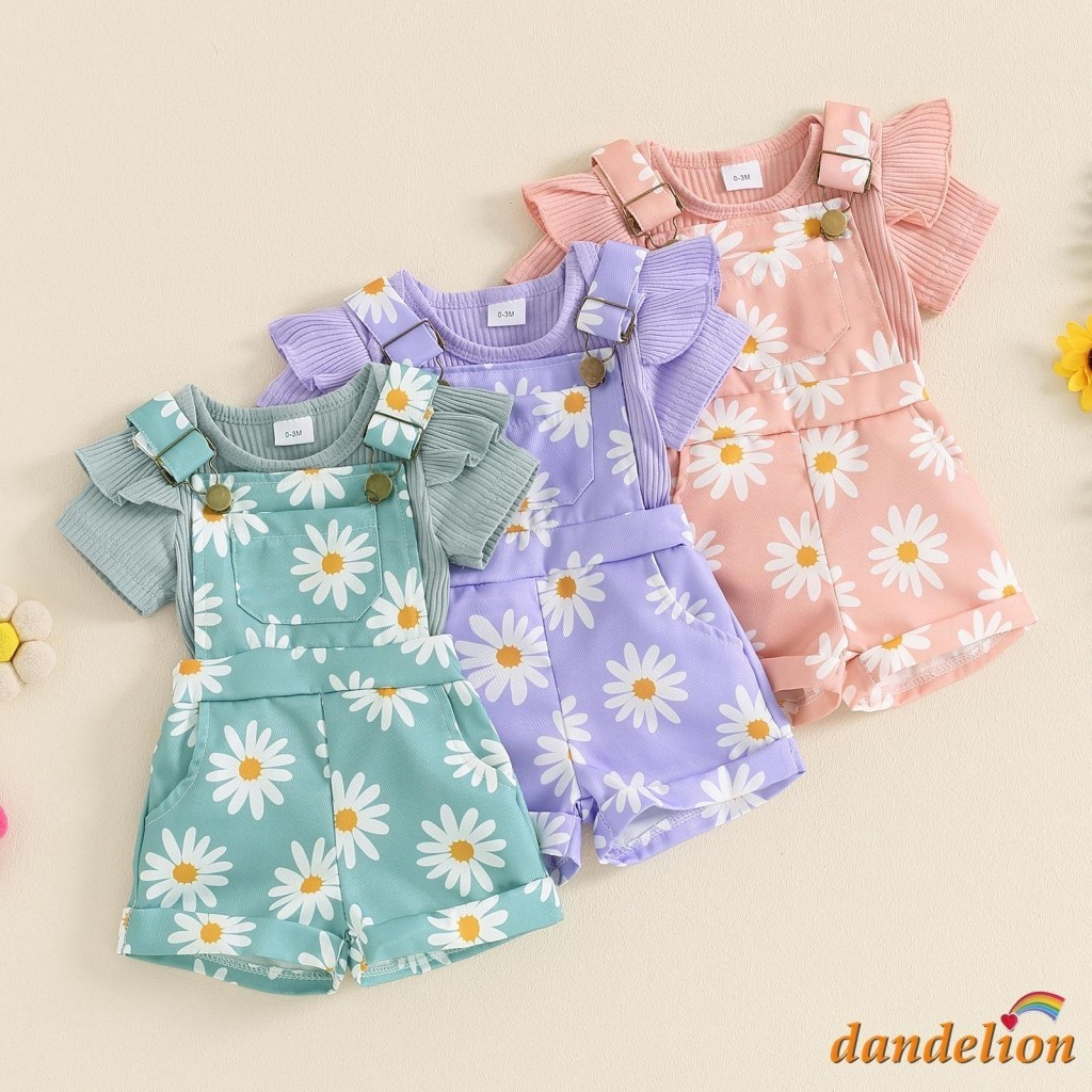 Dandelion-Macacão De Manga Curta Com Estampa Floral Para Bebês / Meninas