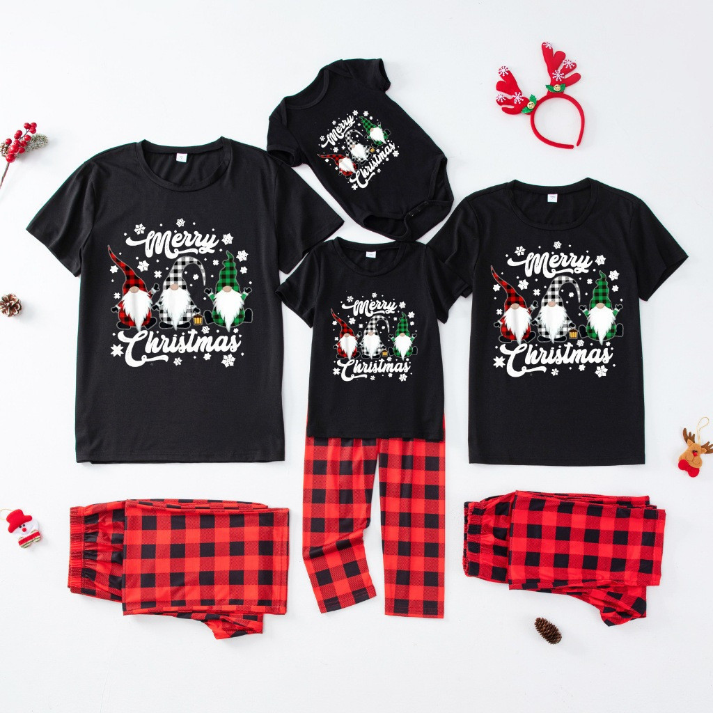 Conjuntos de Pijamas de Natal para Família com Estampa de Letras, Manga Curta, Pai, Mãe, Filhos, Bebê, Macacão PJs UKY