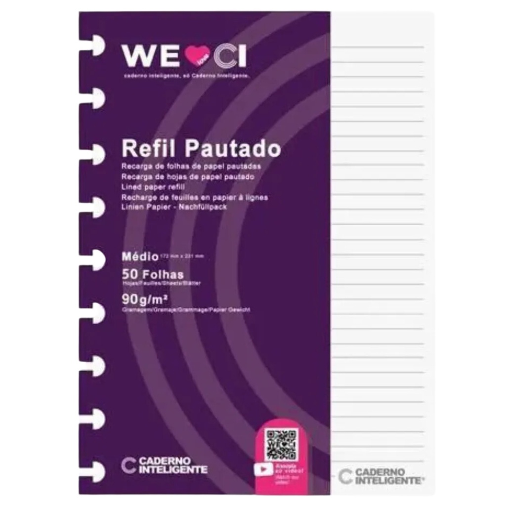 Bloco refil médio pautado 90g com 50 folhas CIRM3003 Caderno Inteligente