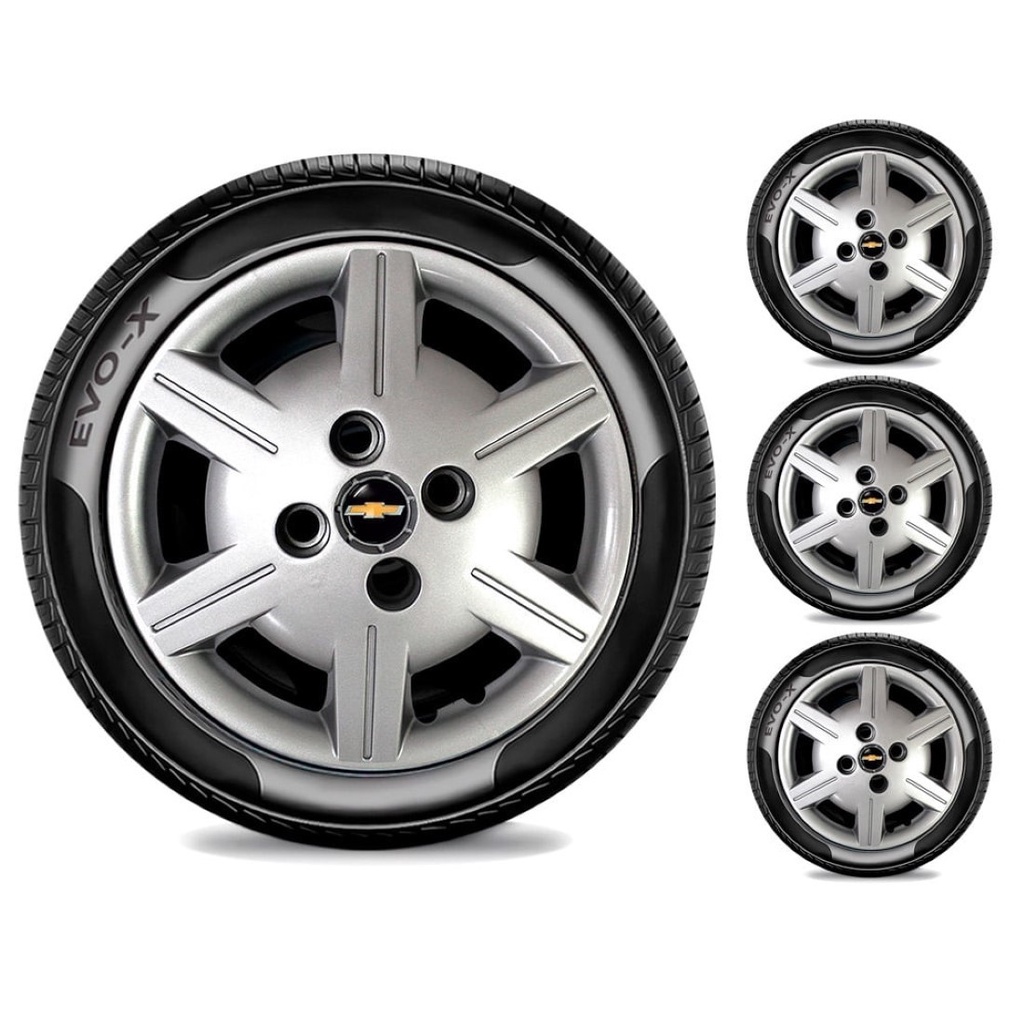 Jogo Calota Aro 13 GM Celta Prisma Corsa Classic 2002 2003 2004 2005 2006 2007 2008 2009 2010 2011 2012 2013 - 4 Peças