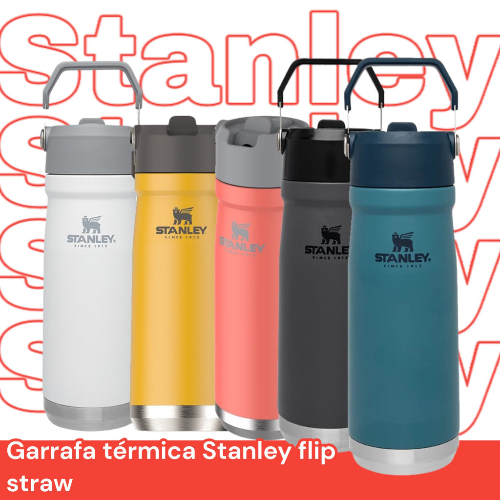 Garrafa Térmica Stley Flip Straw 650ml Inox Tampa com Alça e Bico Com Canudo stanley