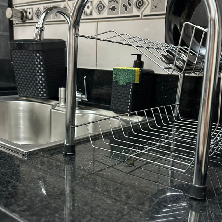 Jogo de Cozinha Escorredor de louça Cromado+ Lixeira de Pia 05 litros+ Porta detergente kit