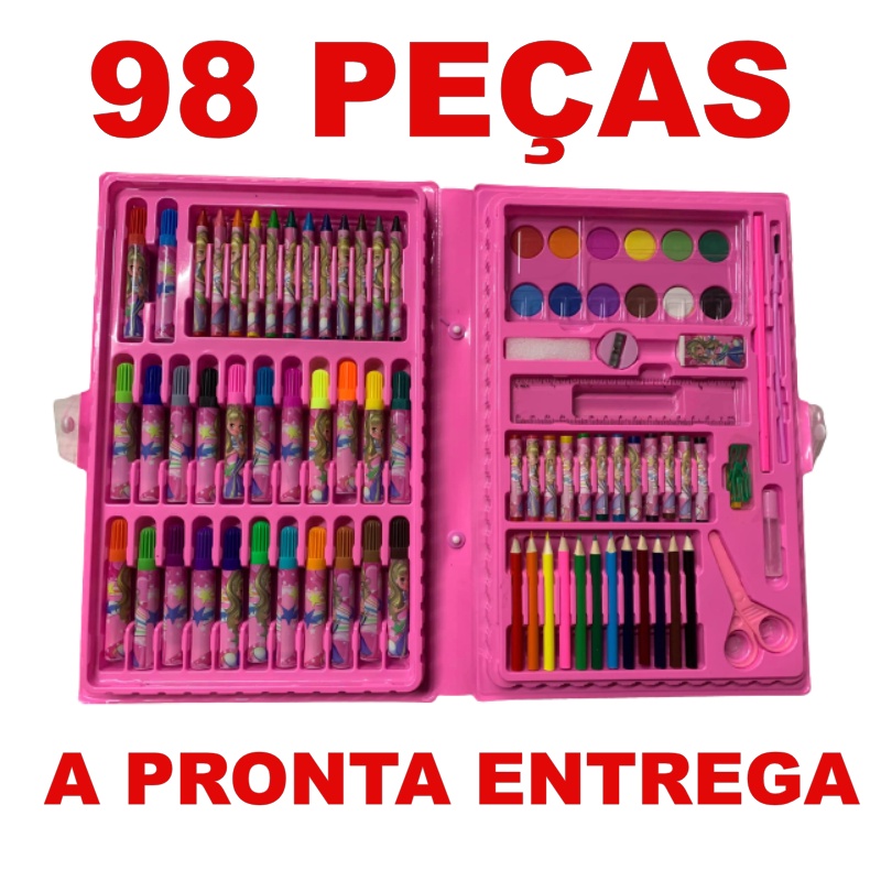 Estojo Maleta Pintura 24 a 150 Peças Infantil Canetinhas Giz Lápis de Cor escolha