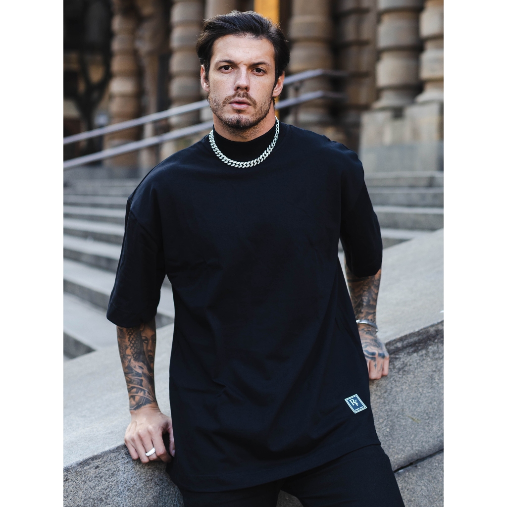 Camiseta Oversized Gola Alta Lisa Básica Streetwear Masculina