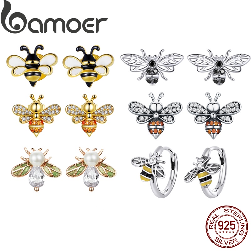 Bamoer 925 Par De Prata Esterlina De Desenho Simples Brincos De Cavilha De Abelha Multi Estilo Fashion Jewelry Gift
