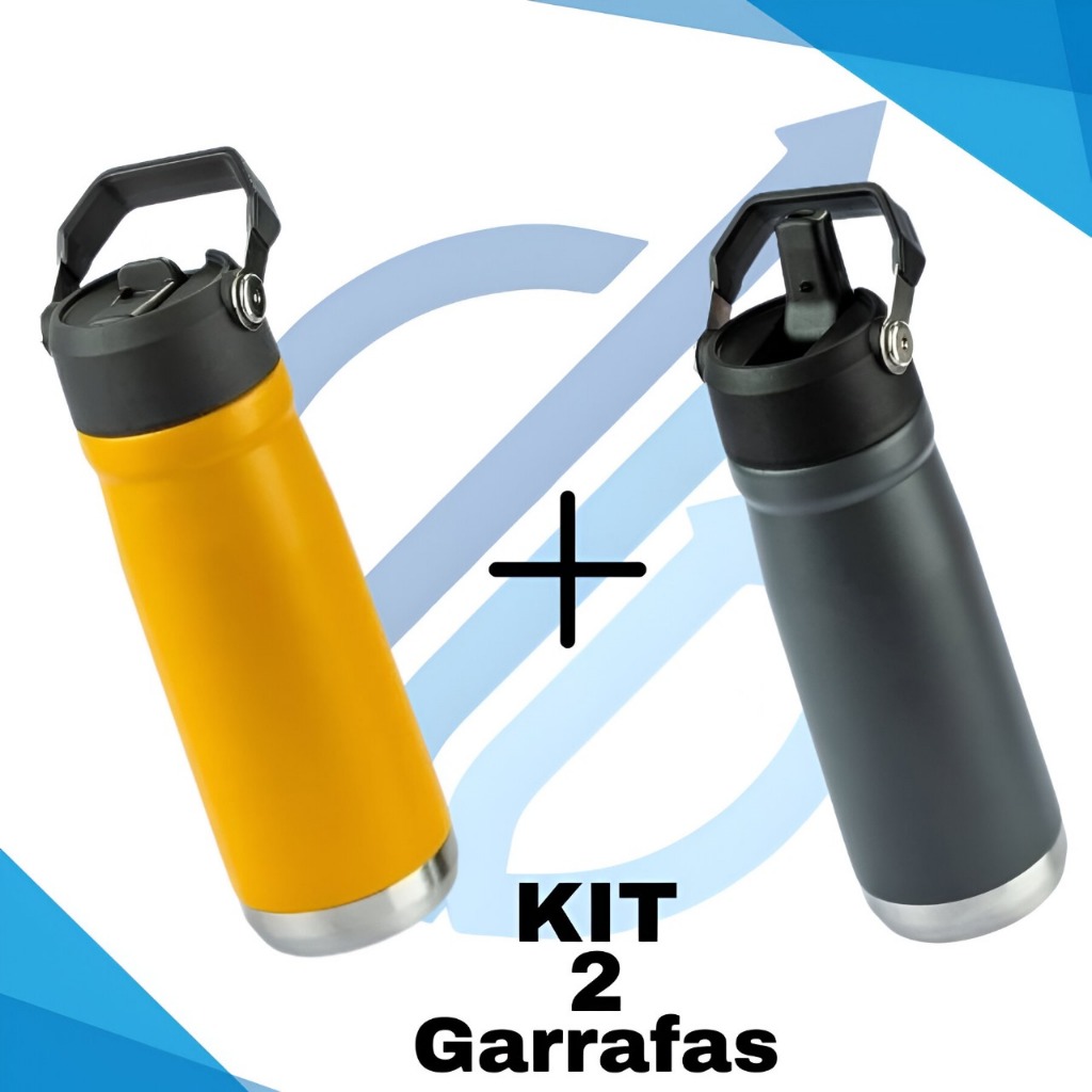 Kit 2 Garrafa 1 copo Térmica Stley Flip Straw 550ml Inox Tampa com Alça e Bico Com Canudo tipo stanley