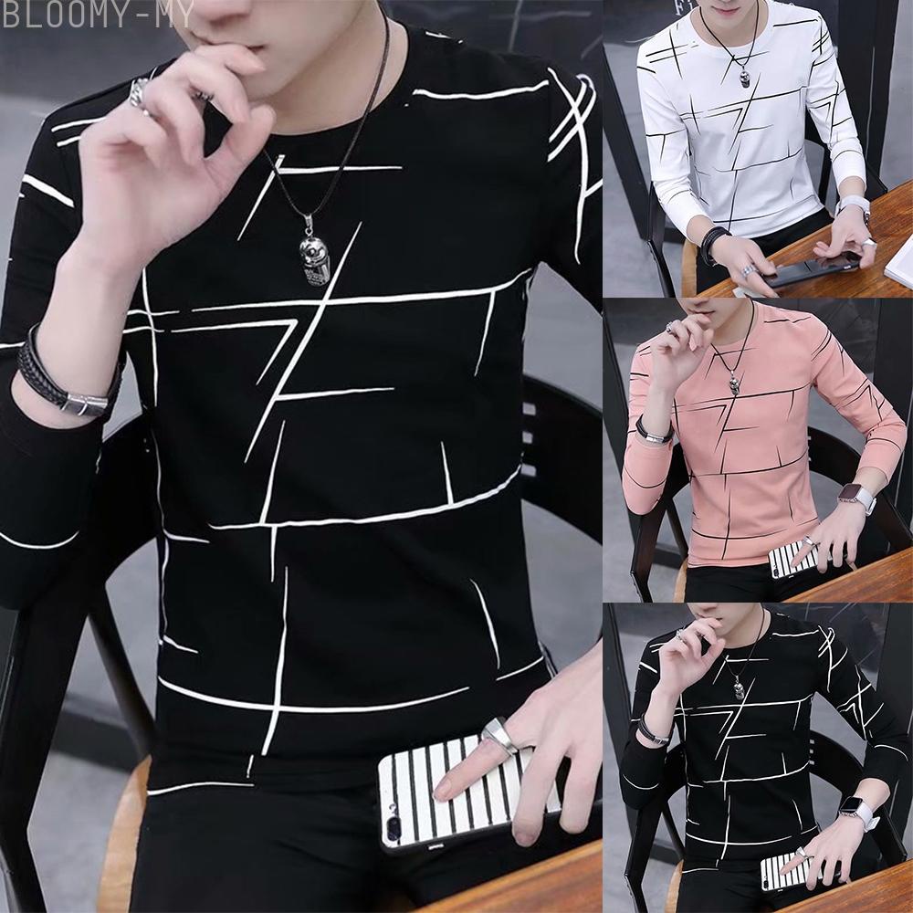 " Blusa Pullover Crew Neck Muscle Top Poliéster Slim Fit T Shirt Manga Longa Tamanhos M A 3XL Para Homens "