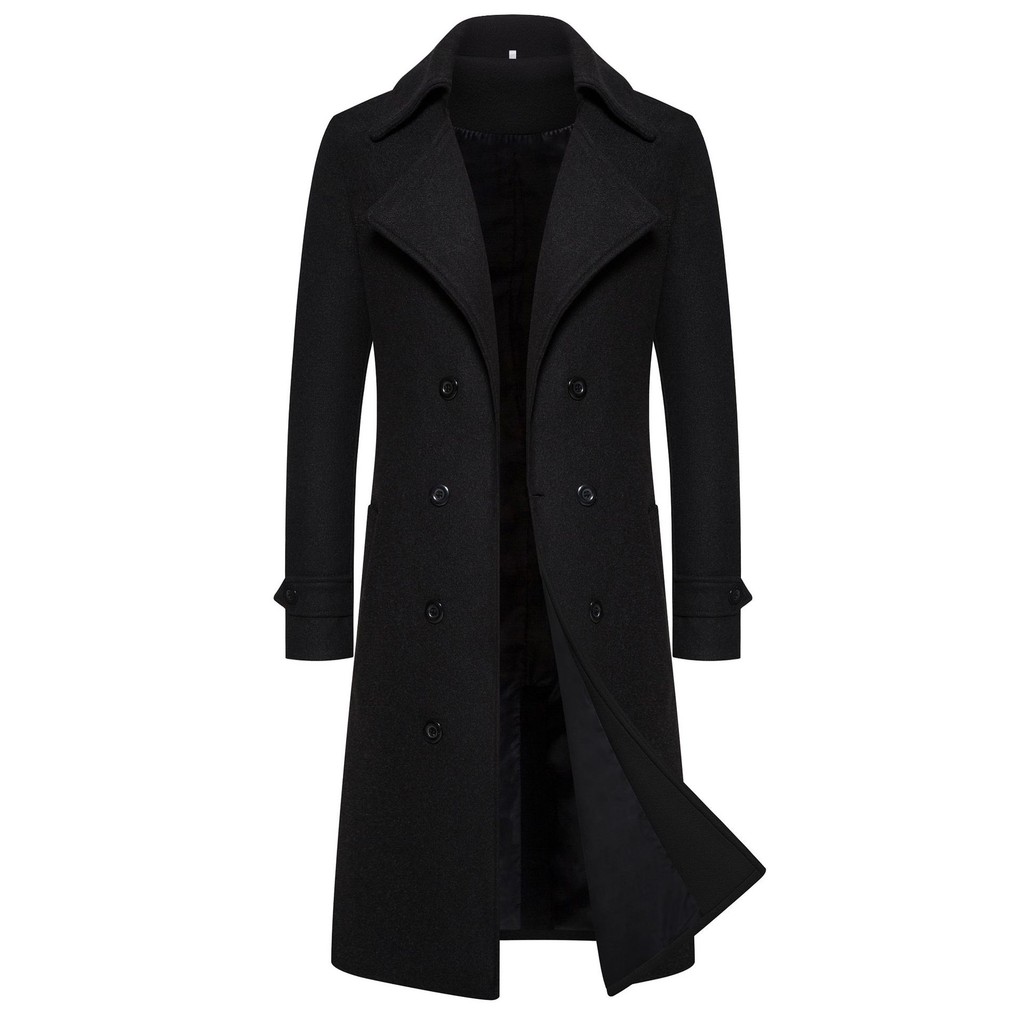[M-4XL] Casaco Trench Longo Duplo de Outono Inverno 2025 para Homens, Casaco de Lã Slim Fit