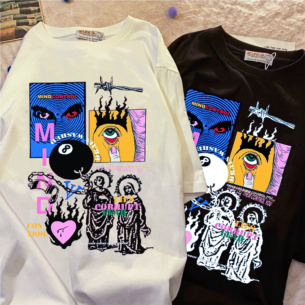 Camiseta Básica T-shirt estampada Unissex MInd control retro vintage streetwear aesthetic eyes fear