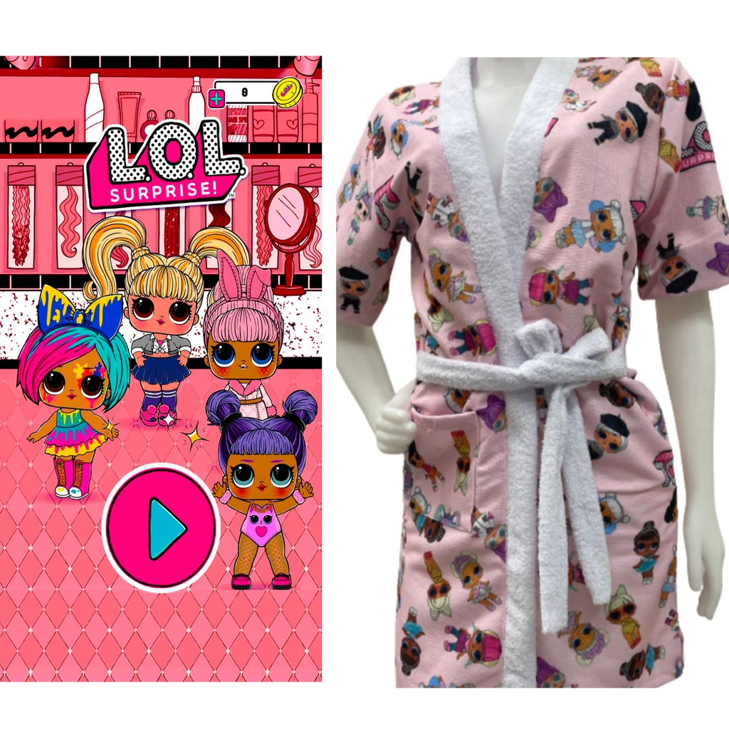 KIT Roupão + Toalha de Banho LoL Praia Piscina Felpa Estampado