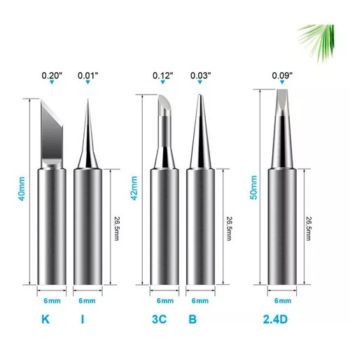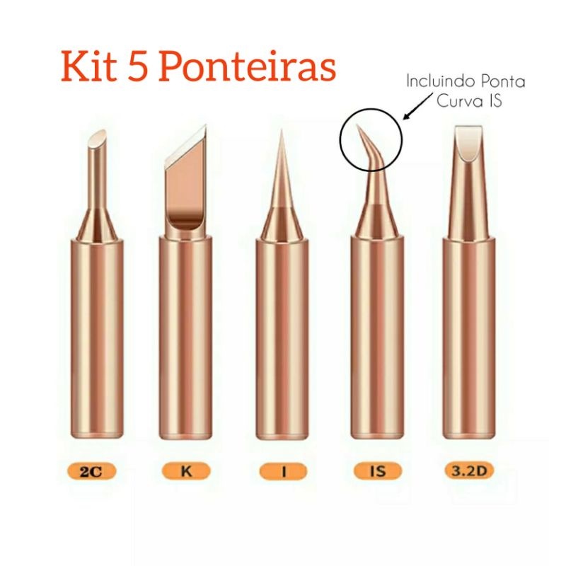 Kit 5 Pontas para Ferro de Solda Cobre 900m Para estação de Solda