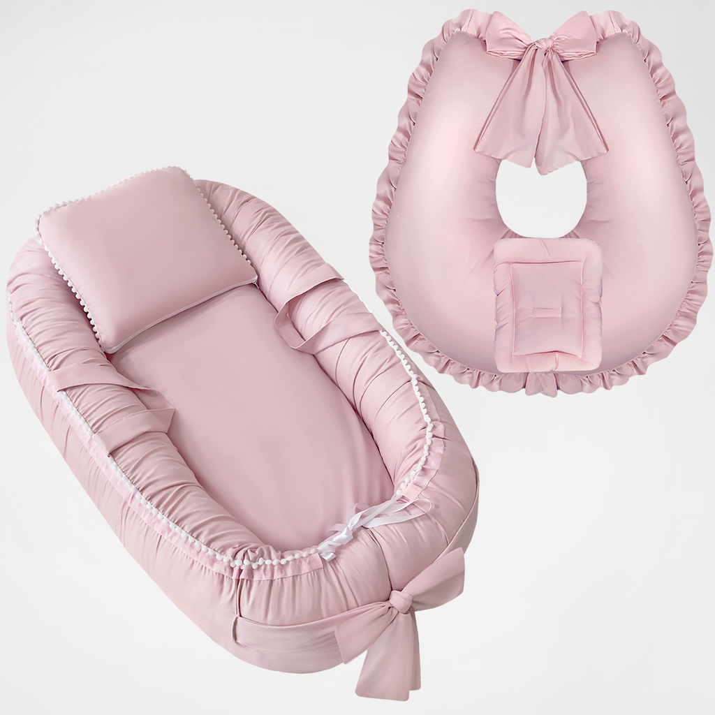 Combo Bebê Ninho Naninha Redutor De Berço Com Enchimento e Zíper + Almofada de Amamentar e Apoio de Amamentação