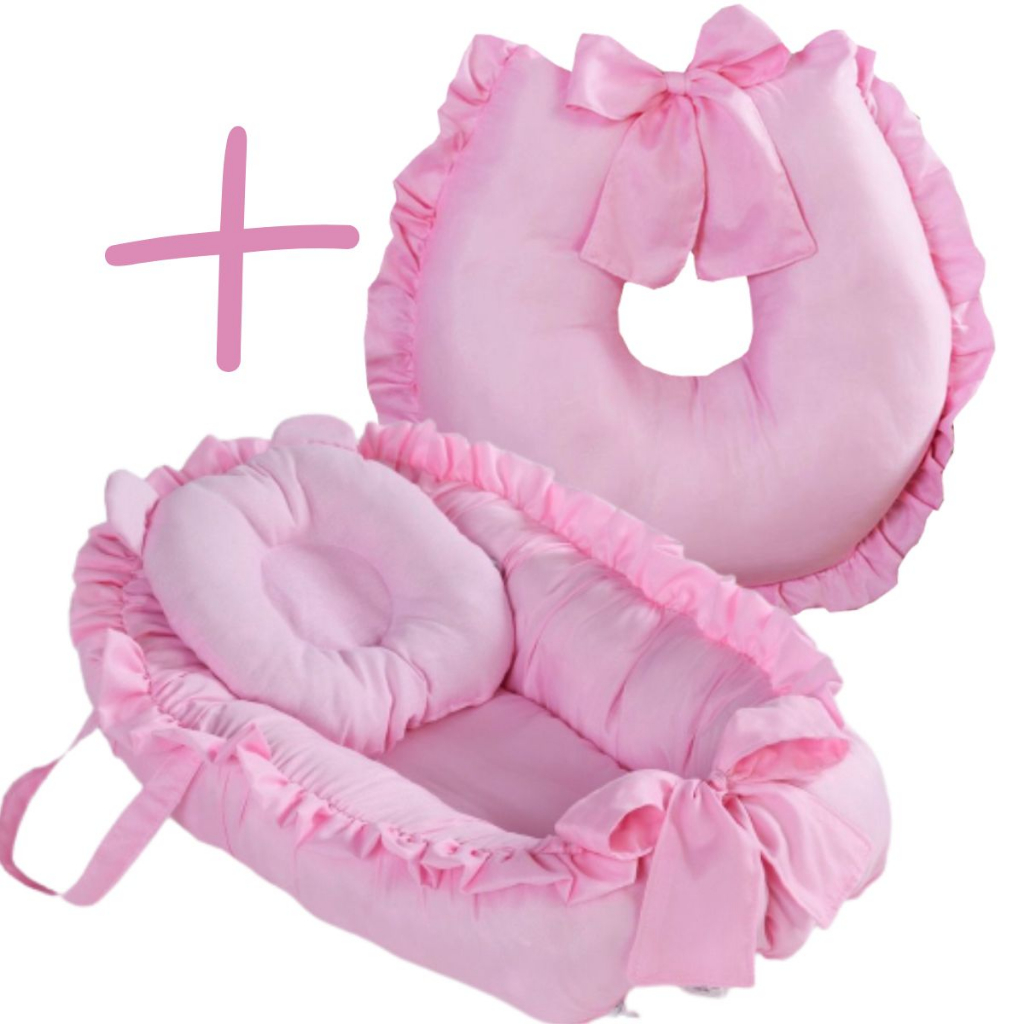 Ninho Redutor de Berço Para Bebê com Almofada Amamentação 2 Peças Enxoval Completo Menina Menino Rosa Azul Roxo Diversas Cores