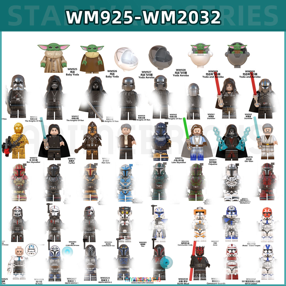 Star Wars Cavaleiros De Ren C-3PO Luke Skywalker Heavy Mandalorian Obi-Wan Death Watch Blocos De Construção Brinquedos