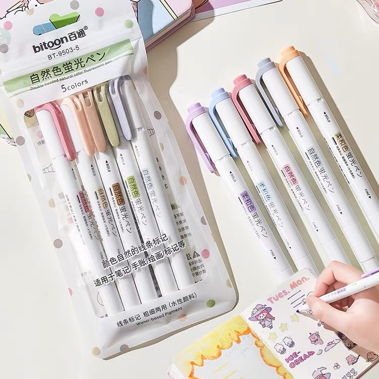 5 Pcs/Set Conjunto De Marcador De Dupla Ponta Para Proteção Dos Olhos Escrita Lisa Caneta Marcadora Multicolor Papelaria criativa