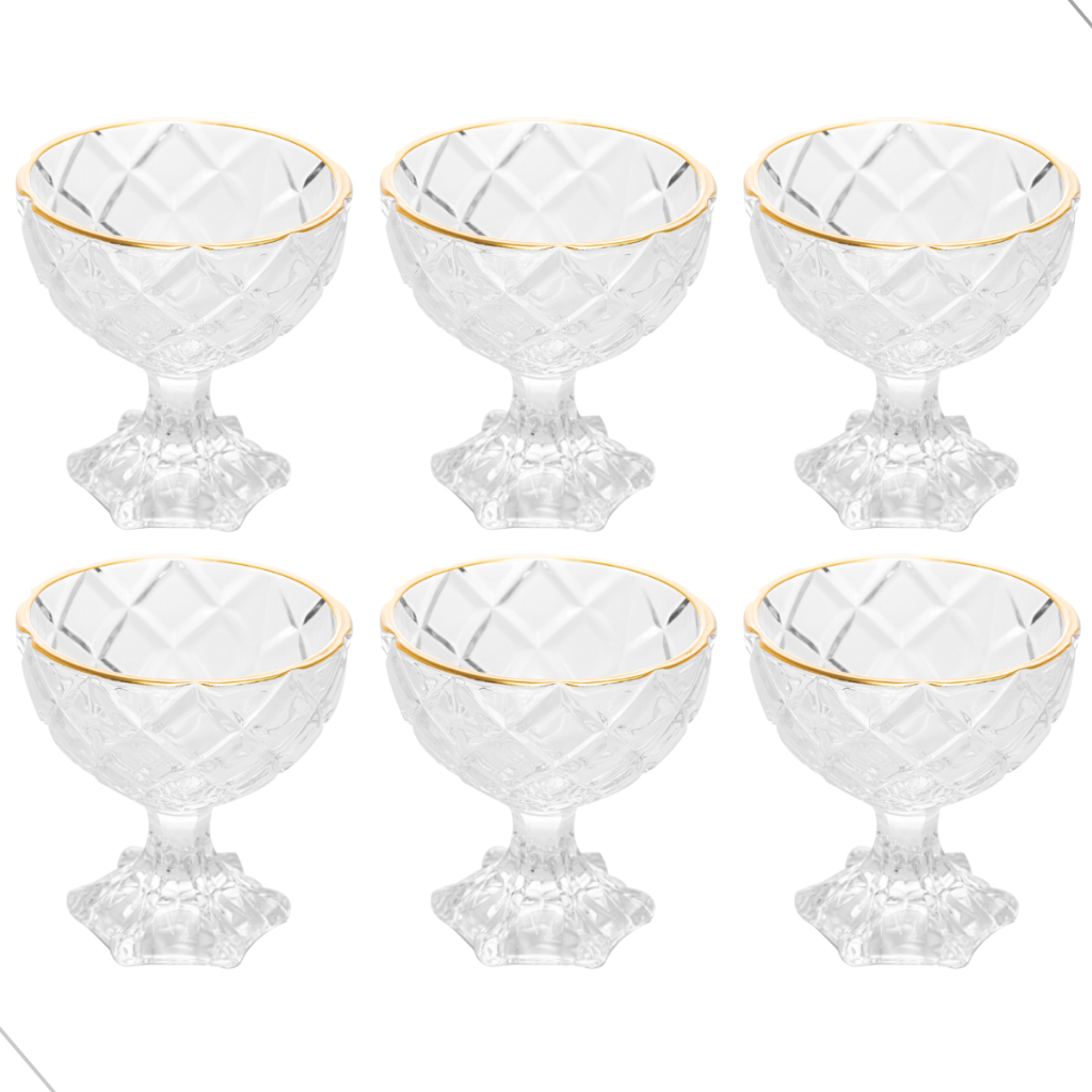 Conjunto 6 Taças de Sobremesa de Vidro Deli Diamond com Fio de Ouro 170ml - Lyor 5362