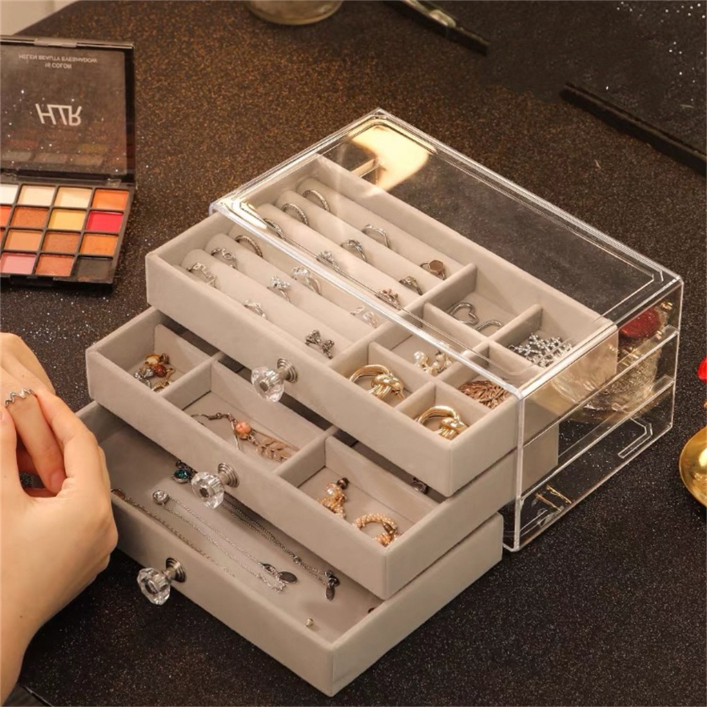 Porta Joia Acrílico Luxo Com 3/1 Camadas Brinco Anel Compartimento caixa de armazenamento de jóias