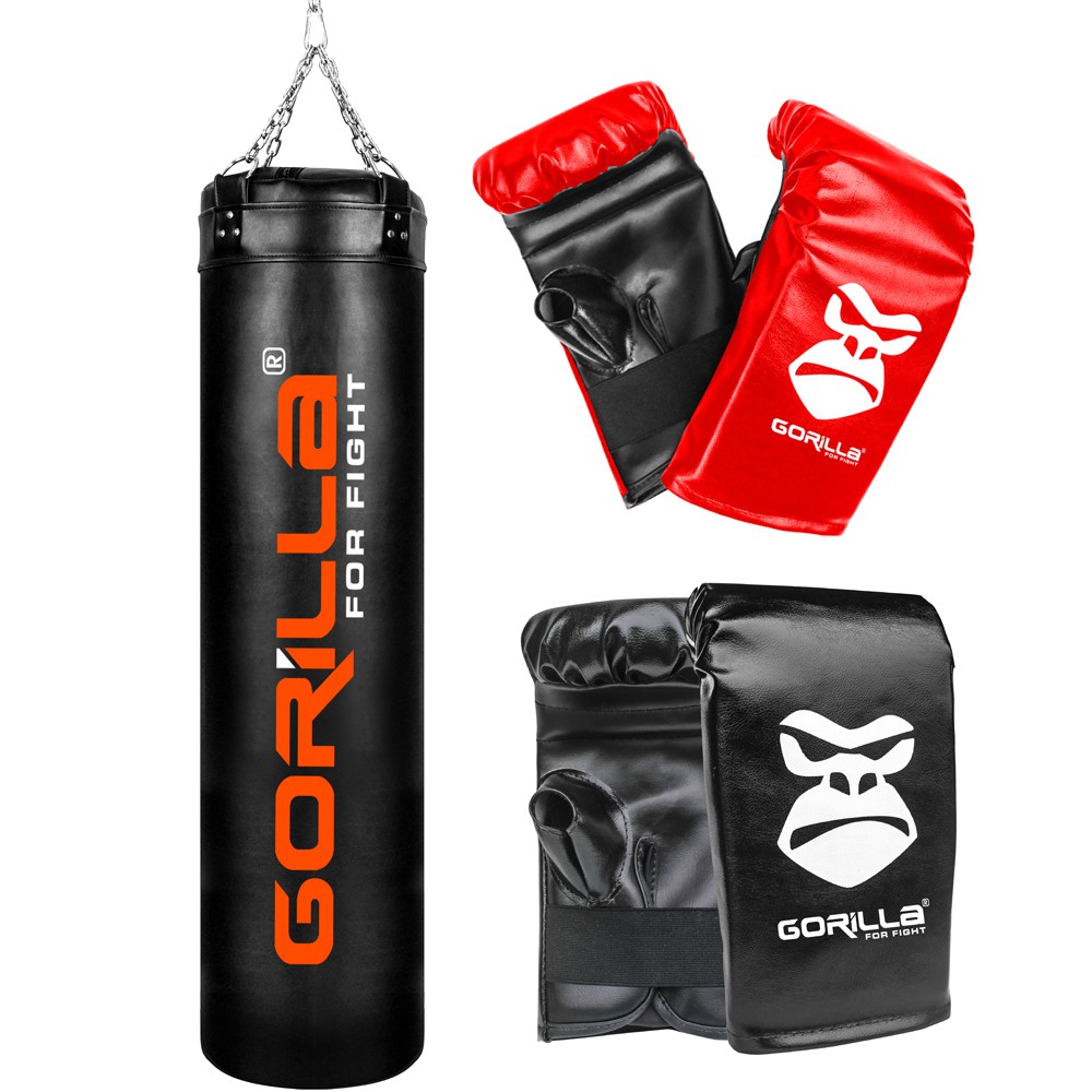 Gorilla Kit Saco De Pancada 180 Cm Profissional Reforçado + 02 Pares De Luvas Bate Saco Adulto Preço Direto De Fábrica MMA Muay Thai Boxe Treino Luta Artes Marciais Casa Academia Lazer Fisico Exercicio Saude Bater Esporte Chutes Socos Combo