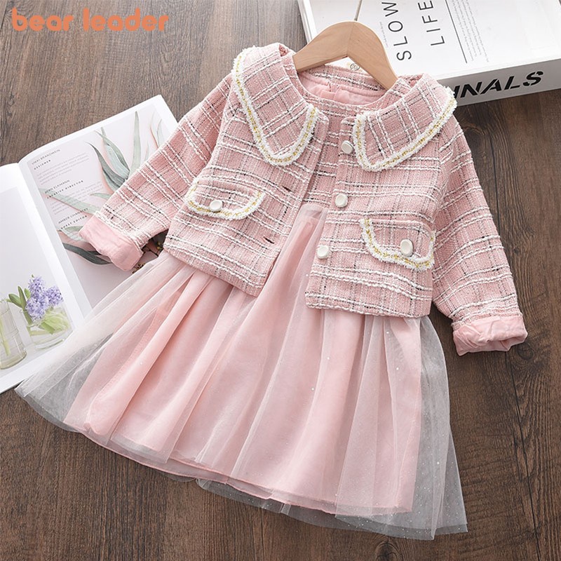 Fato De Líder De Urso Para Meninas 2-7 Anos Casaco De Vento Pequeno Fragrância + Colete De Fios De Rede 2 Peças 2023 Nova Moda De Outono Roupa Casual Bebês