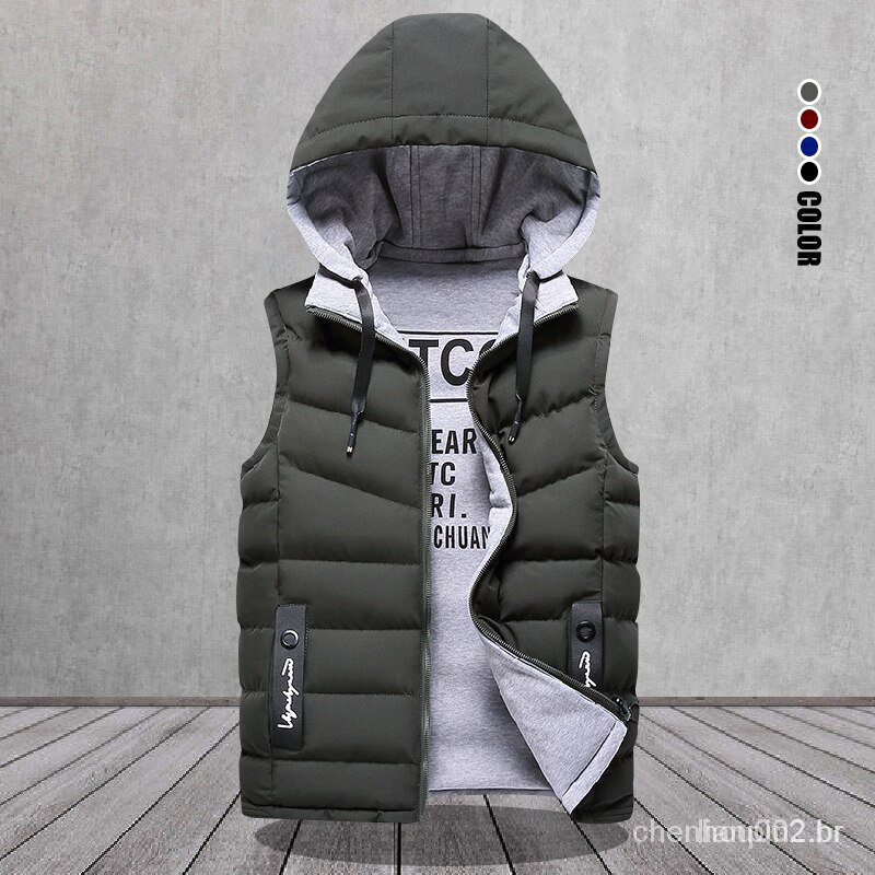 Colete sem mangas para homens, casaco quente com capuz, novo, 2023, casual, roupa de fora, chapéu destacável