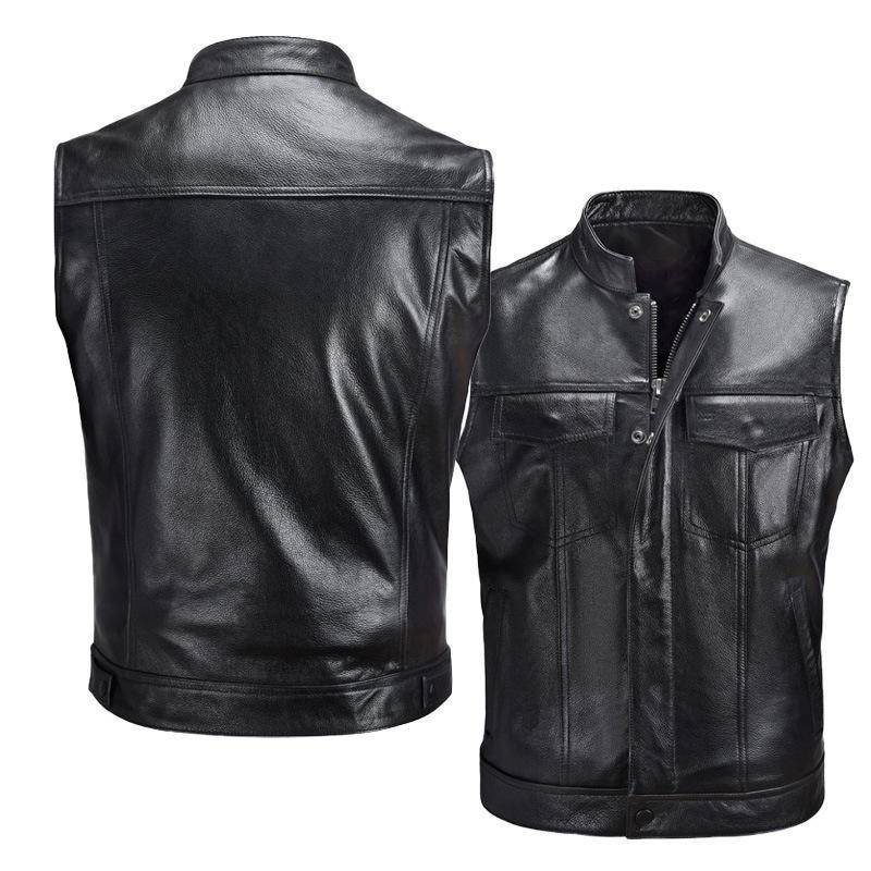 Colete De Couro casual De Motocicleta Com Botão De Zíper