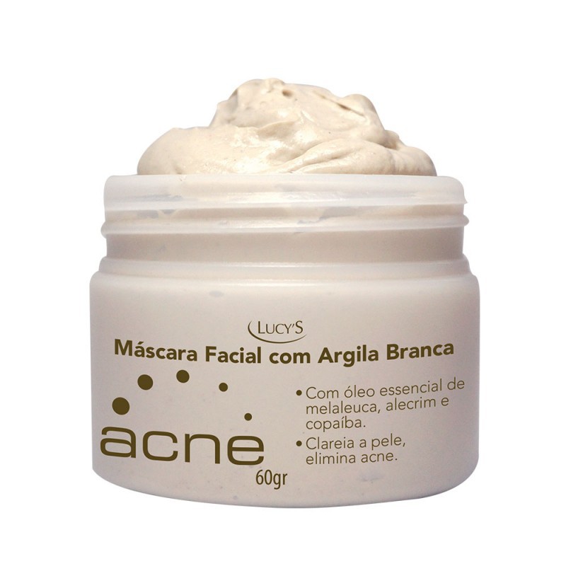Máscara Facial com Argila Branca Acne Tratamento de Acnes Auxilia no Clareamento de Melasma Manchas Sol Espinhas e Sardas 60gr.