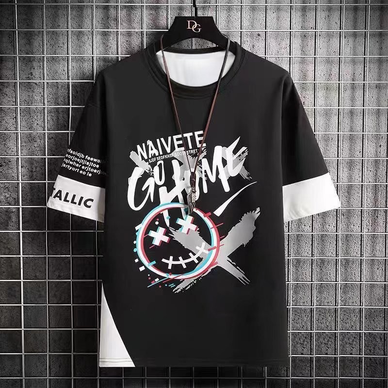 Nova Camiseta De Manga Curta Verão Masculina Estilo Coreano Da Moda Meia Simples Hong Kong Casual Solta Marca