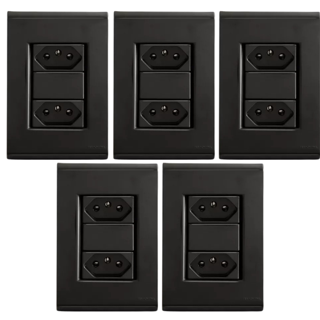 Kit Conjunto Tomada Dupla 10A Tramontina Liz Grafite com Nota Fiscal 5, 10, 15 e 20 PÇS
