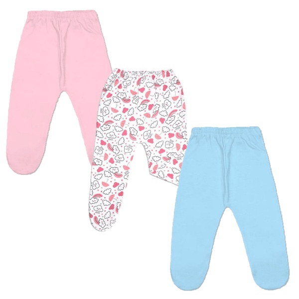 Kit Com 3 Mijão Pé Fechado Bebê Menino e Menina Sortidos e Com Pequenos Defeitos - (PP/P/M/G/1/2/3)