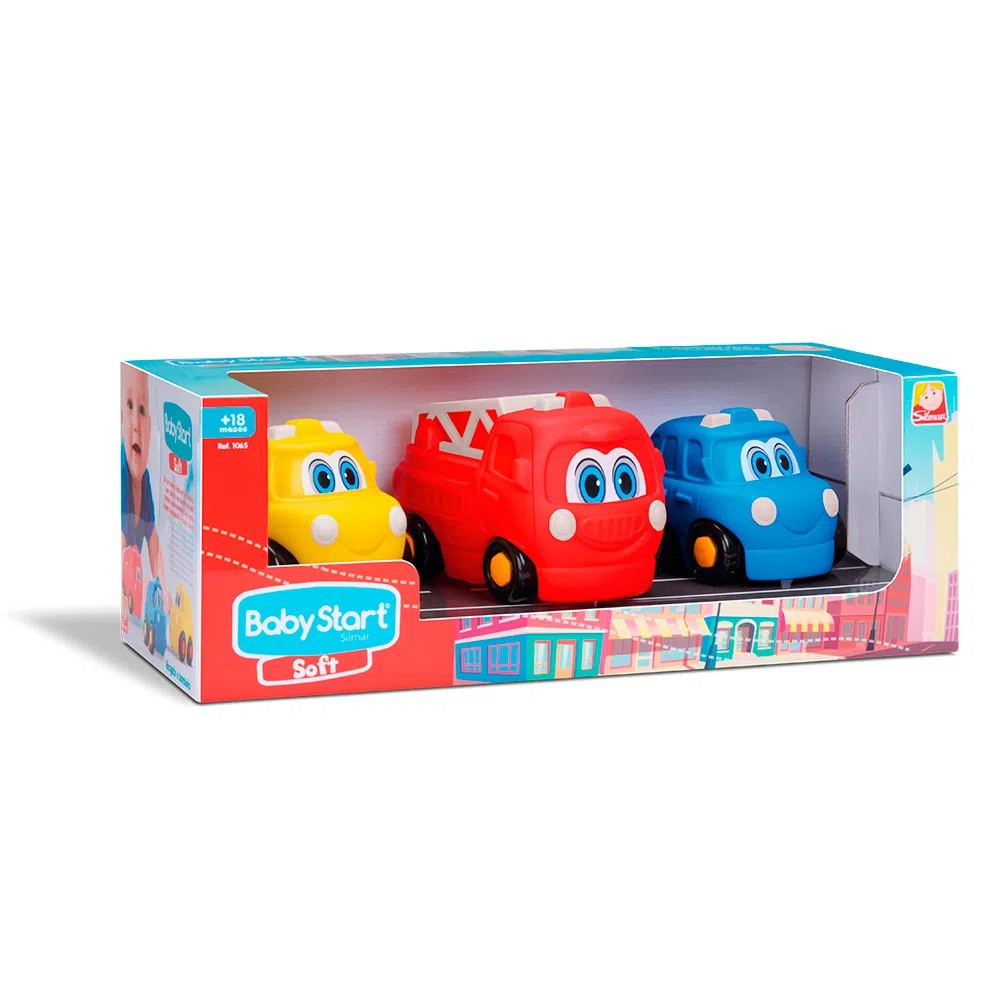Coleção Kit Carrinho Bombeiro Polícia de Borracha Macio Mordedor Soft Baby Rodinhas Resgate para Bebês 1 Ano Presente Menino Silmar