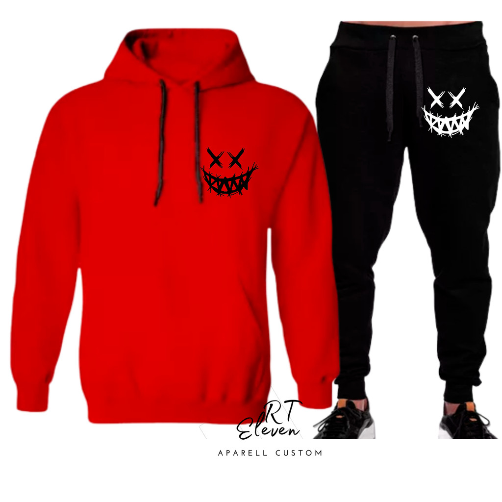 Conjunto Moletom Smiley Evil Estampa Blusa De Frio + Calça linha premium moleton canguru com bolso e capuz