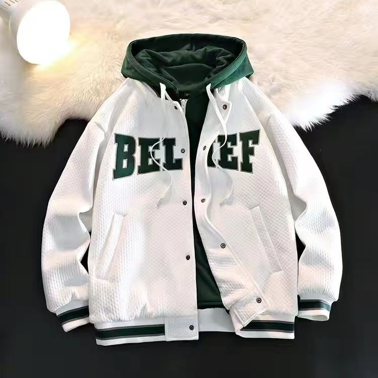 Jaqueta college masculina Fato De Beisebol Com Capuz 2 Em 1 Casaco