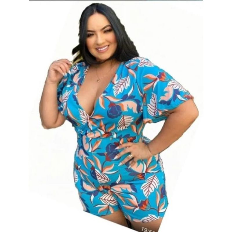 Macacao Feminino Plus Size Pantacourt Jogger Skinny com Bojo Alcas Costa Nua com Laco Cintura Alta com Elastico Forrado Soltinho Tamanhos Grandes XG EXG EXGG Festa Moda Verao