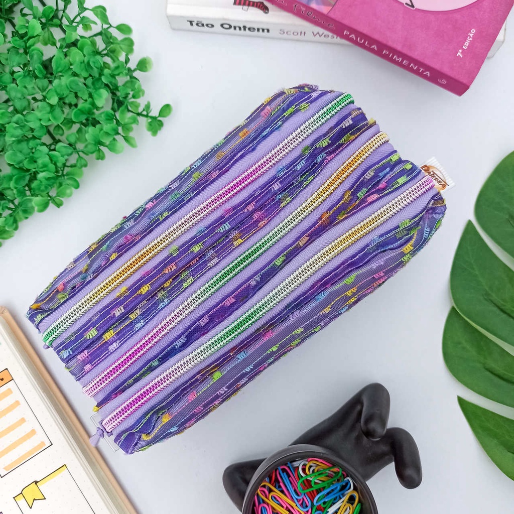 Estojo Escolar Triplo com 3 Repartições Lilás Grande