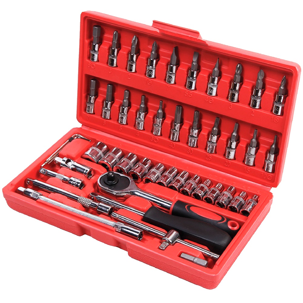 Kit Jogo De 46 Peças Com Chaves de Ferramentas Soquetes Aço CR-V + Maleta de Transporte LOJA TX