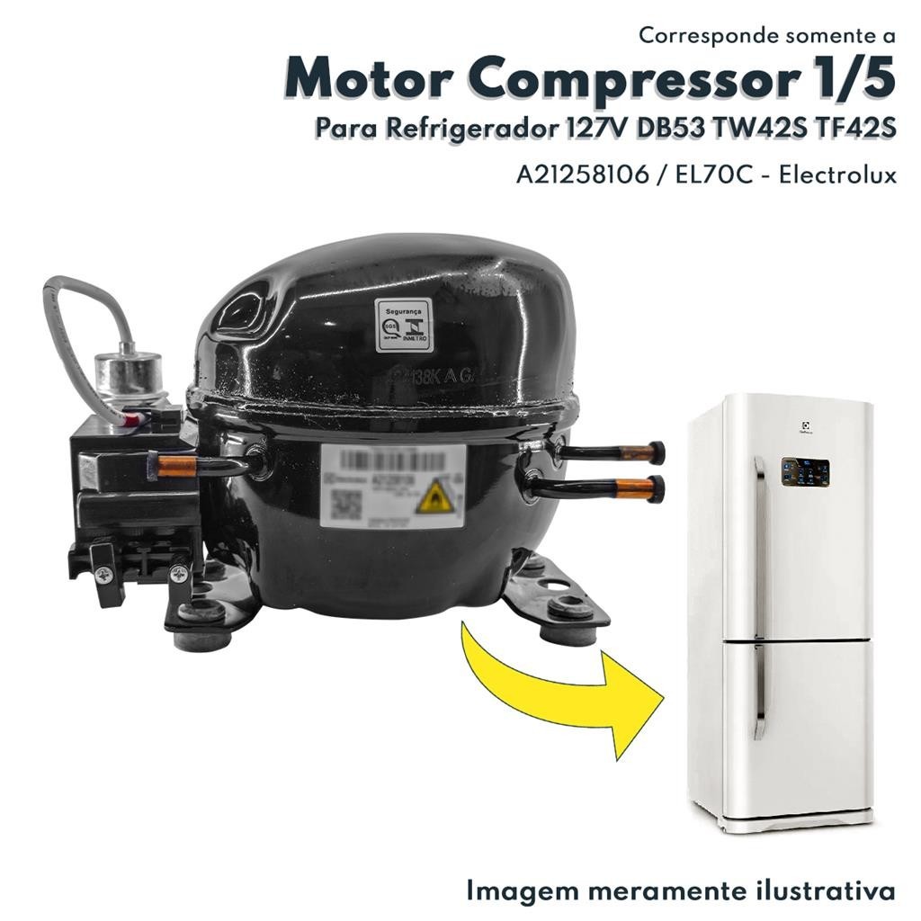 Compressor 1/5 127V 60Hz R600A Para Refrigerador DB53 TW42S TF42S Electrolux Original A21258106 EL70C Motor de Geladeira Original
