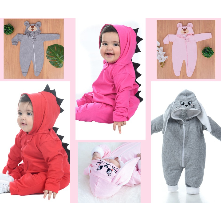 Macacão De Bichinho Para Bebê Menino E Menina Com Capuz Bordado Roupas de Bebê