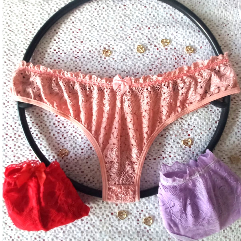 Kit 3 Calcinha Tanga De Renda Lingerie Com Regulagem de Coração E Forro