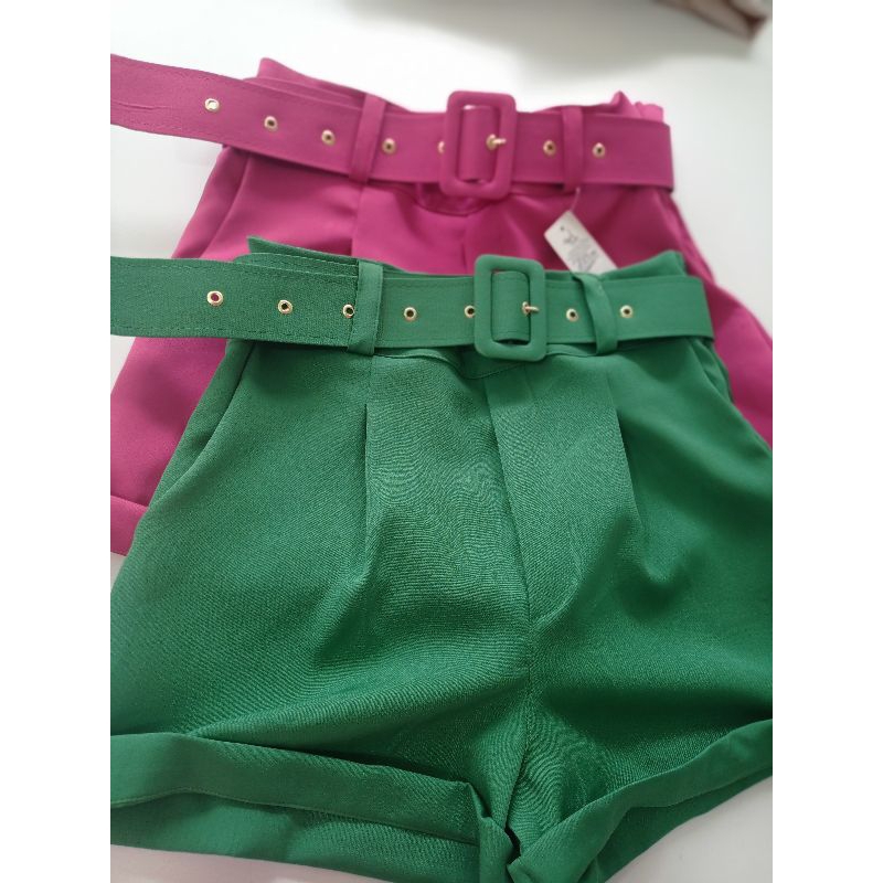 Short Feminino Cintura Alta Alfaiataria Com Cinto Casual Elegante