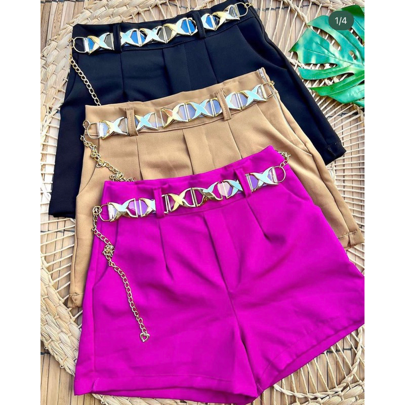 Short Feminino Alfaiataria Cintura Alta com Cinto Moda Verão