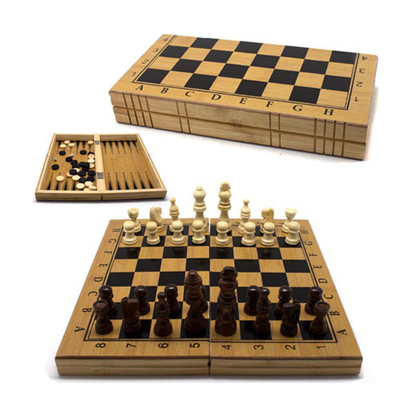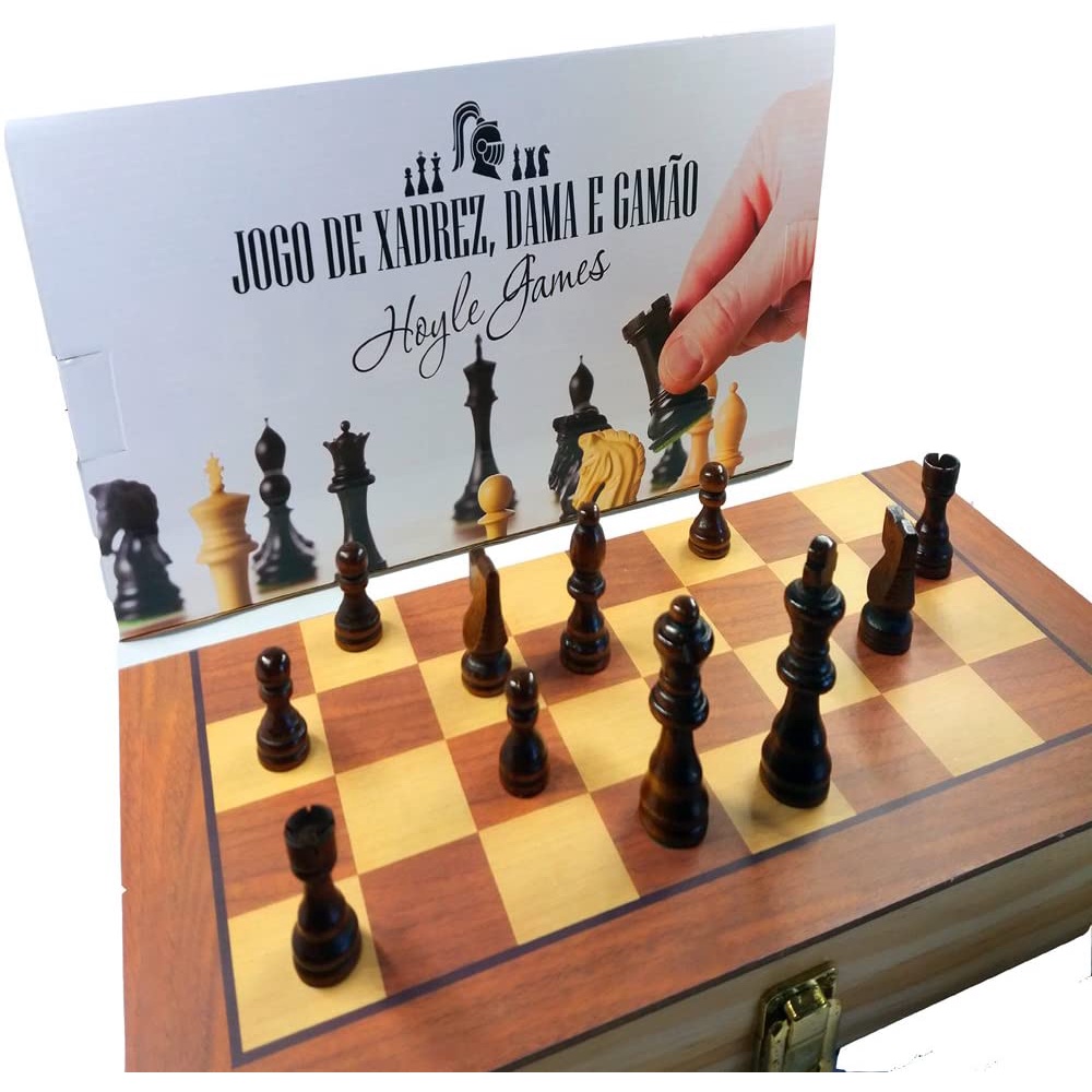 Jogo de Xadrez Dama e Gamão em Madeira Tabuleiro 3 em 1 Hoyle