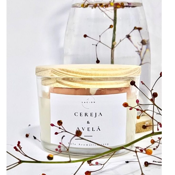 Vela Aromática Cereja e Avelã Artesanal Perfumada 120gr | Cera de Coco