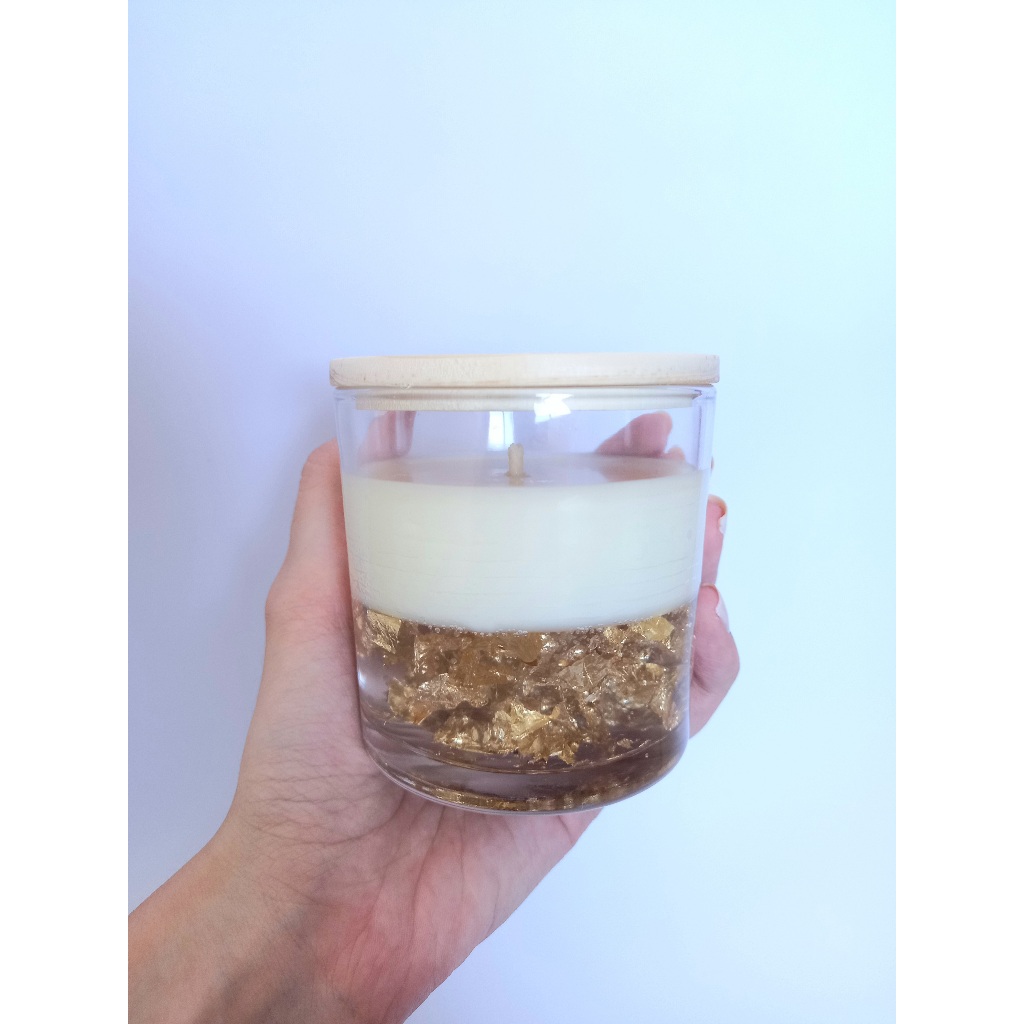 Vela Aromática Perfumada Com Cera de Coco e Gel Com Folhas de Ouro 180g